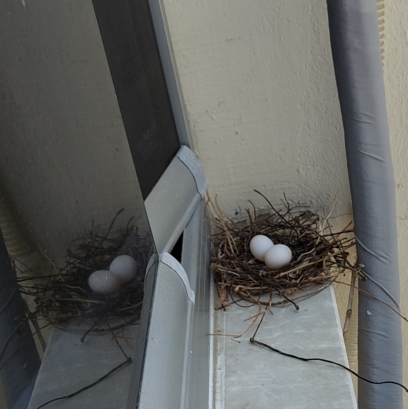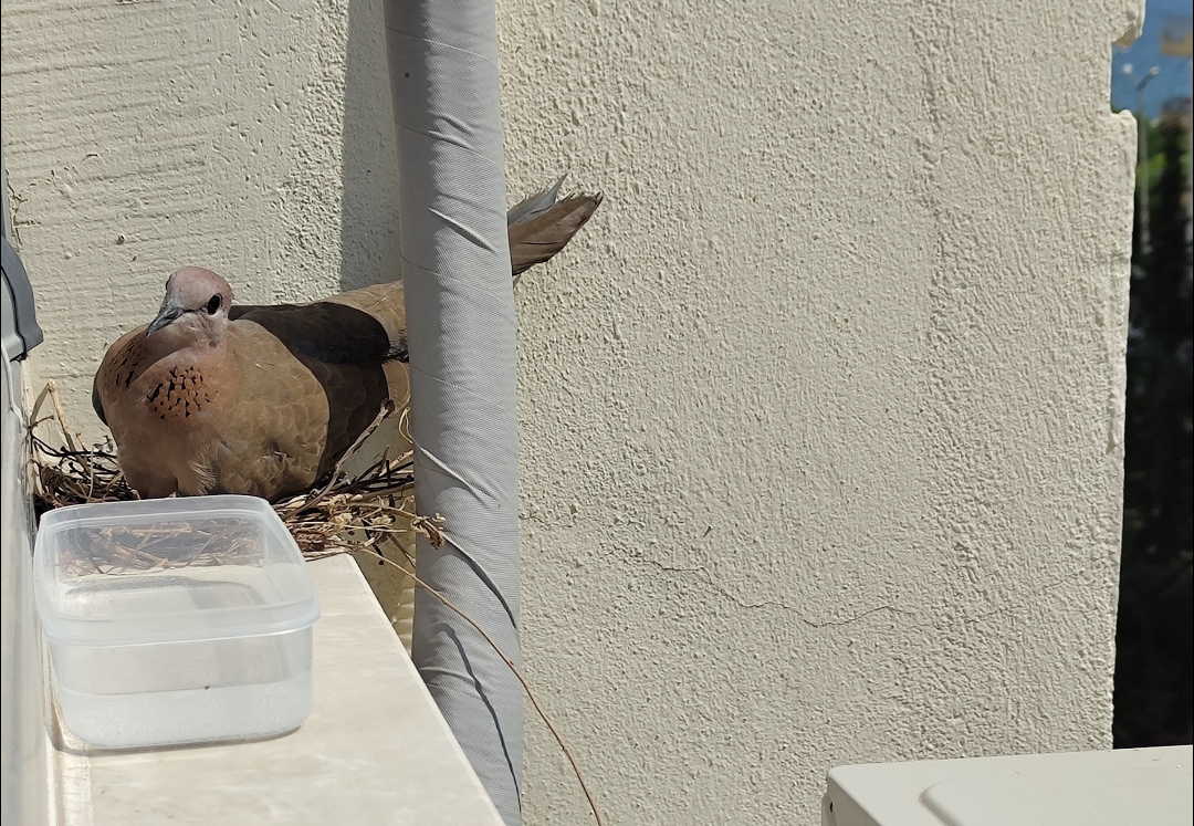 А у нас на подоконнике свили гнездо и отложили яйца. Сидит голубка, высиживает.