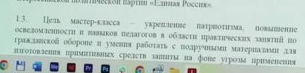 «Цель мастер-класса — укрепление патриотизма, повышение навыков работы с подручными материалами для изготовления примитивных средств защиты на фоне угрозы применения спутниковых и радиоэлектронных средств НАТО», — гласит подпись к посту.