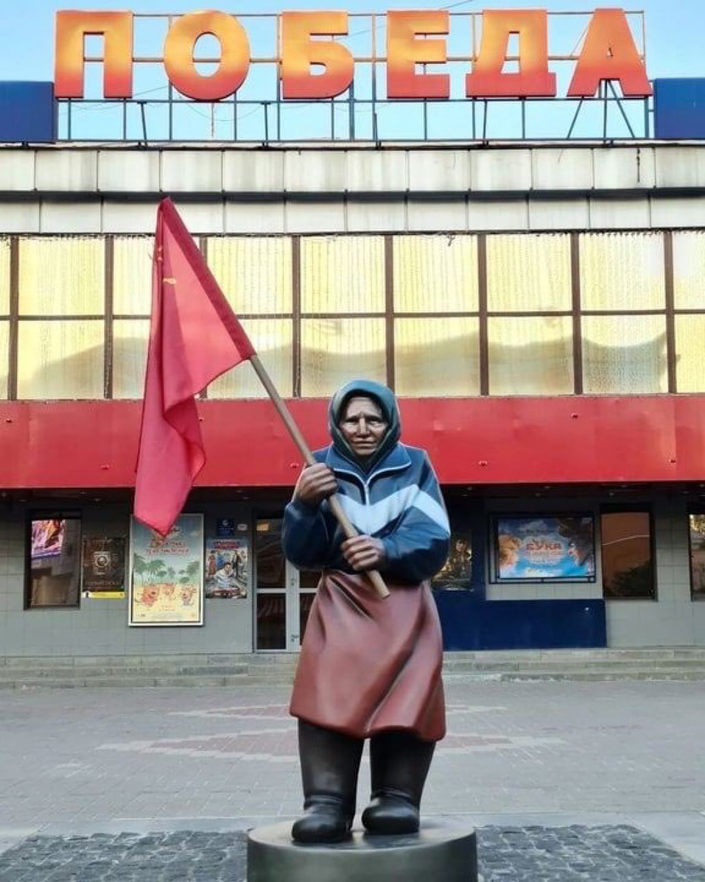 "Статую бабушки с флагом Советского Союза, которую накануне установили в Белгороде, пришлось убрать. Фигура подверглась вандализму и теперь власти ищут для нее место с ограниченным доступом."