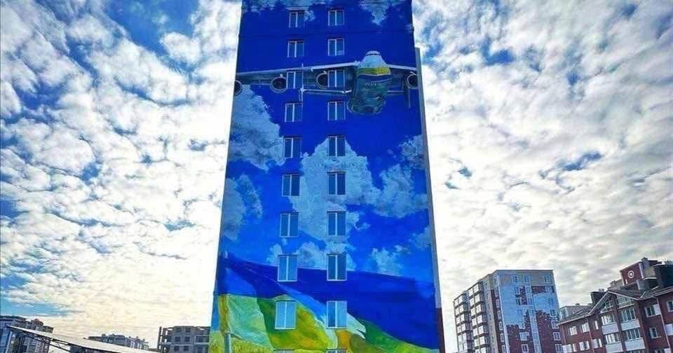 А у нас в Гостомеле вот такой мурал появился. С Мрией.