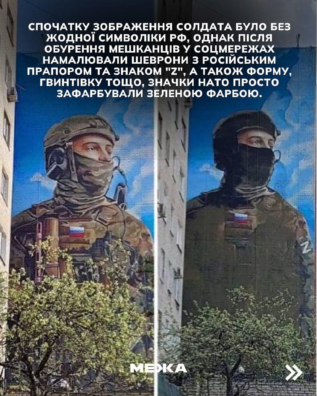 Похоже, что жителей возмутила не тематика мурала, а только национальность нарисованного военного. Всё это очень познавательно, я считаю.
