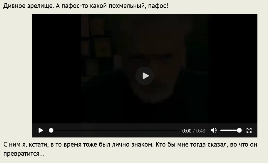 Дивное зрелище. А пафос-то какой похмельный, пафос!