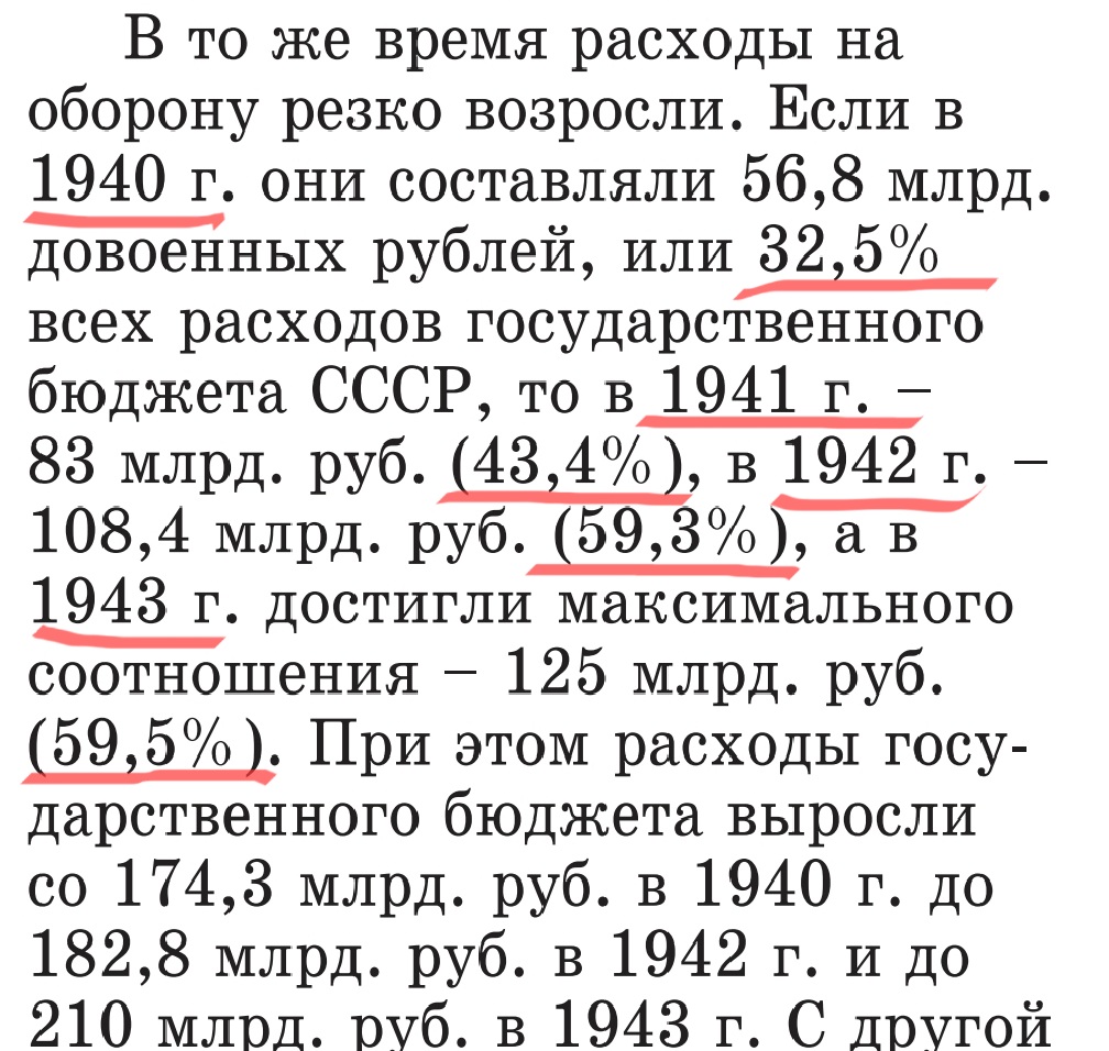 Для примера: "Расходы действительно готовившейся к войне и вооющей страны - СССР":