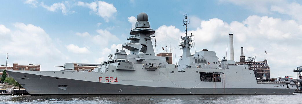 Италия послала военный фрегат Alpino, на вооружение которого ракеты, пушки, торпеды и боевые вертолеты.