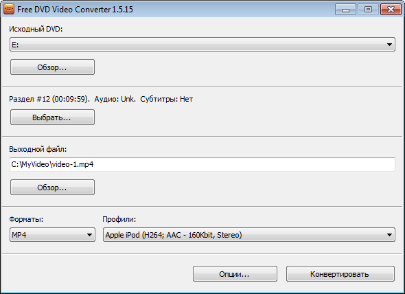 Понадобилось тут один старый DVD перегнать в один файл - чтобы было удобнее использовать. А я это давно не делал. Начал искать соответствующую программу. Перебрал несколько довольно кривых платных, которые в триальных версиях то баннер посреди кадра нарисуют, то звук обрезают, то еще какую-нибудь подлянку подкидывают (особенно повеселила программа AVS Video Converter, которая сразу требовала денег, не позволяя оценить результат, ну и при этом процессор выжирала на 100%, и это на Core i7-3770), ну и в результате в конце концов нашел совершенно бесплатную, очень простую и весьма грамотно работающую программу Free DVD Video Converter.