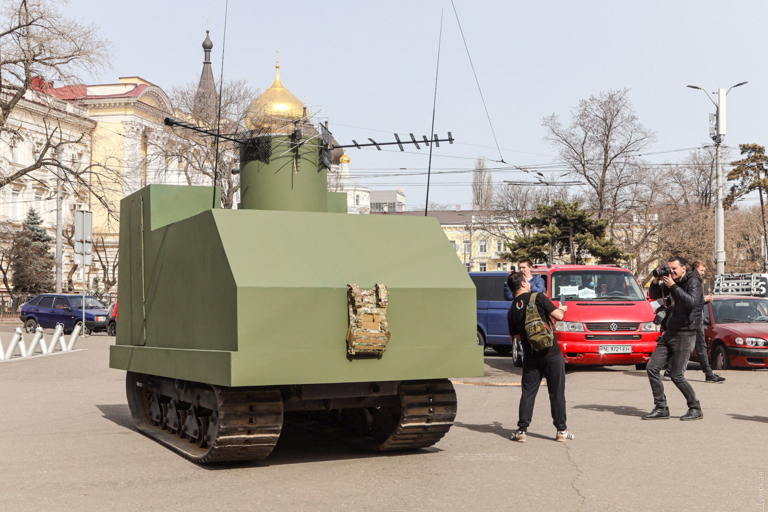 Но тут-то ёрничанье не по поводу танков (приспособление для убийства - штуки весьма примитивные) - а стеб по поводу пропаганды и пропагандонов - которые наизнанку выворачиваются - чтобы оправдать всё что угодно.