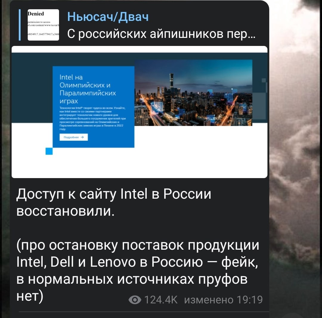Intel, Dell и Lenovo приостановили поставки продукции в Россию