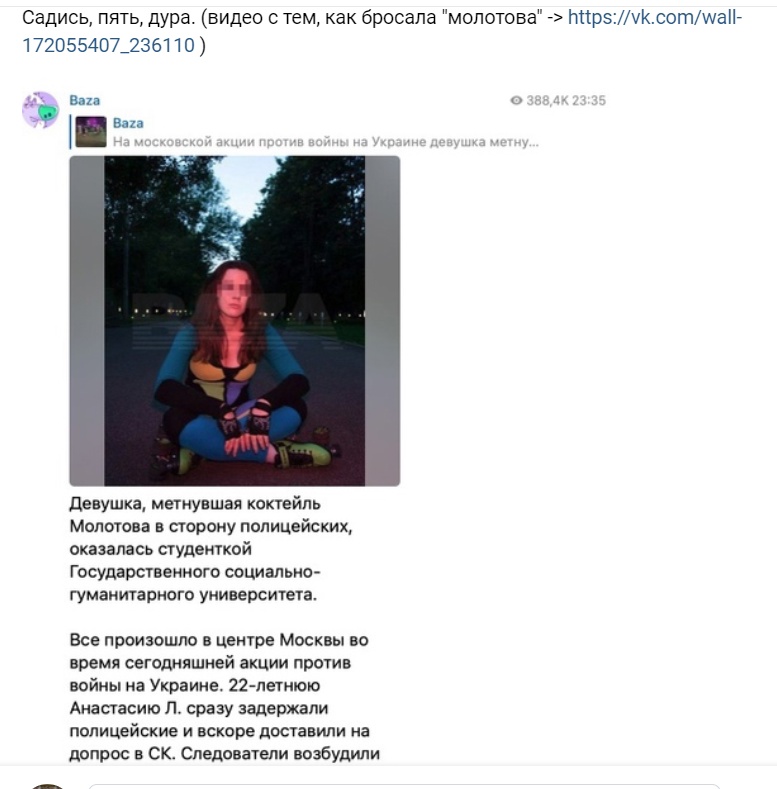 Некоторые паблики пишут, что глава Лиги безопасного интернета Екатерина Мизулина призвала уйти с работы сотрудников федеральных каналов, которые в соцсетях выступают против войны. Пруфов не нашёл, но звучит правдоподобно.