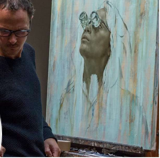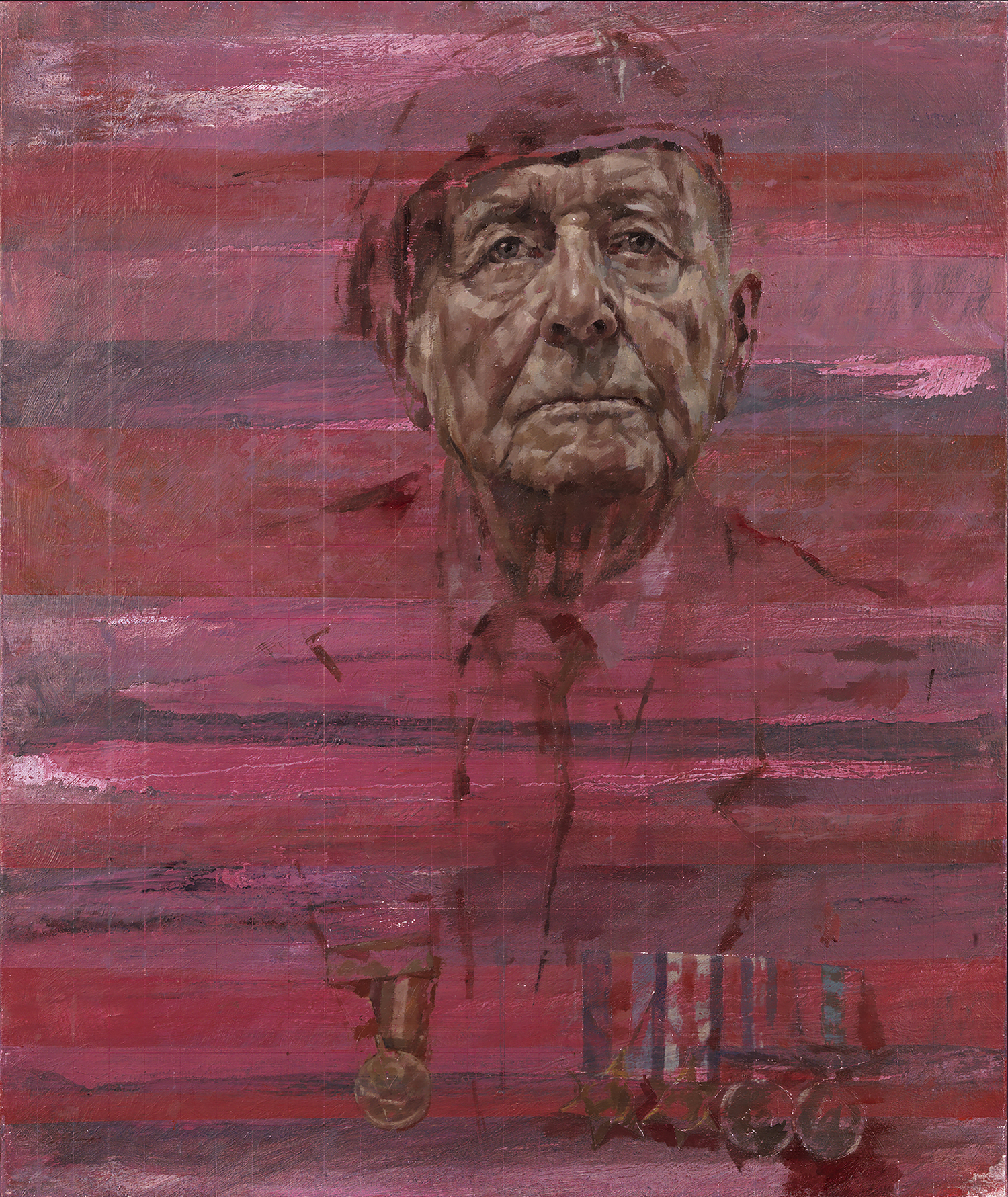Вот его же работа (a portrait of D-Day veteran), даже цвета похожи, но выглядит органичнее, нет ощущения висящей в воздухе головы.