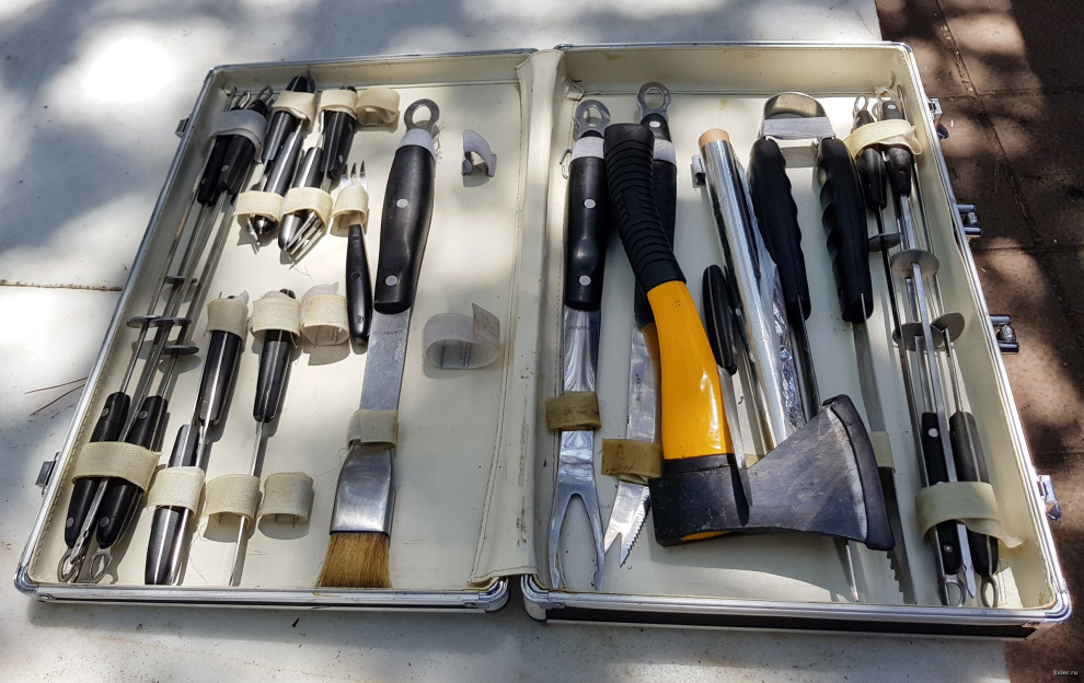 Но он вообще профессионал - взял с собой вот такой пикничковый чемоданчик. Абсолютно все испанцы, подходившие жарить мясо, долго смотрели на содержимое чемоданчика и восхищались.