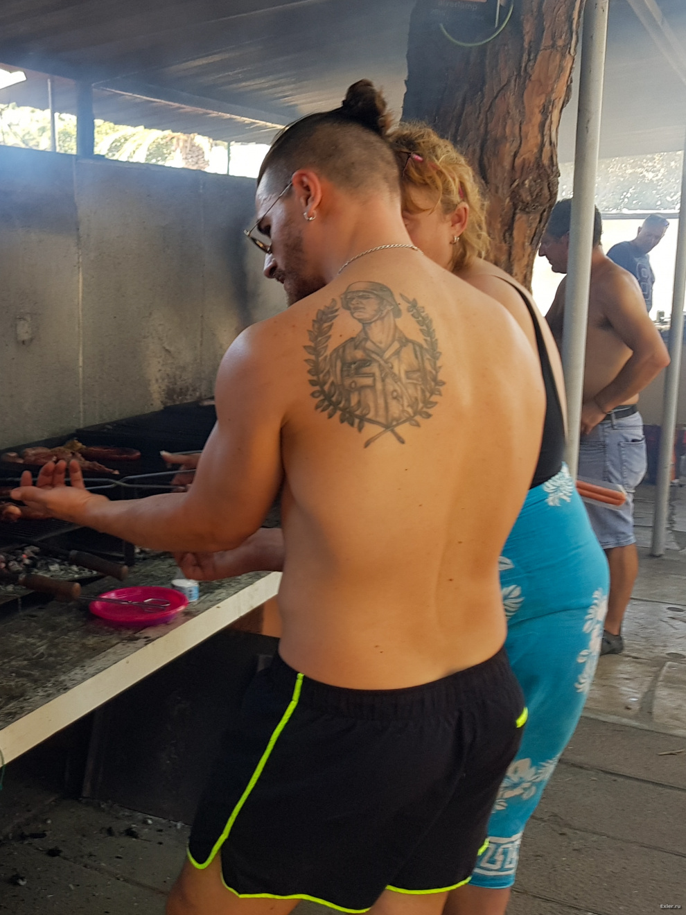 У испанца рядом с нами очень своеобразная наколка. Интересно, это солдат вермахта или мне показалось?