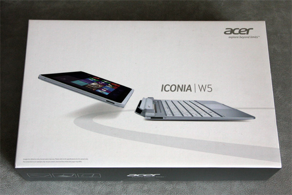 Приехала вот такая крайне меня интересующая железка - планшет на Windows 8 с клавиатурной док-станцией Acer Iconia W5. Я надеялся, что приедет модель с забавным названием W510-27602G03ass, но приехала W510-27602G06iss. Обещают, что планшет тянет до 9 часов, а с док-станцией - до 18 часов. Ну, проверим.
