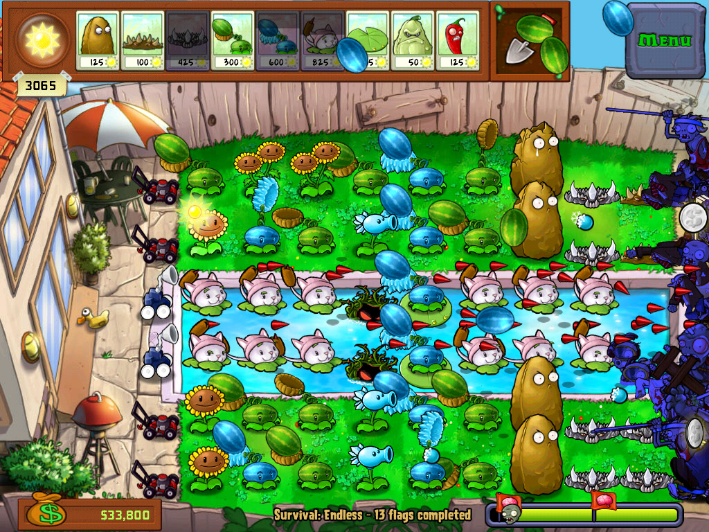 Ореху в заграждении нужны ряда в три. При этом их надо перемежать магнитами. Плюс нужно по максимуму арбузные катапульты и в загашнике иметь перцы массового уничтожения. Я один раз 26 флагов продержался. Там уже какой то нереальный челлендж.