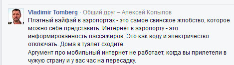 3. Я очень много путешествую, был во многих странах и многих десятках аэропортах. Насколько я помню, буквально в единицах из них был бесплатный вайфай, а точнее, бесплатно давали использовать минут 15, а потом требовали платить. И частенько бывало, что за вайфай в аэропорту требовали какие-то дикие деньги - типа €25 за использование в течение одних суток или €6 за час вайфая.