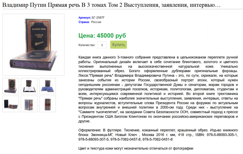 Путин явно уху ел... Кожаный переплёт даже собранию тов.Сталина и не снился, не говоря уж о брежневских "творениях".