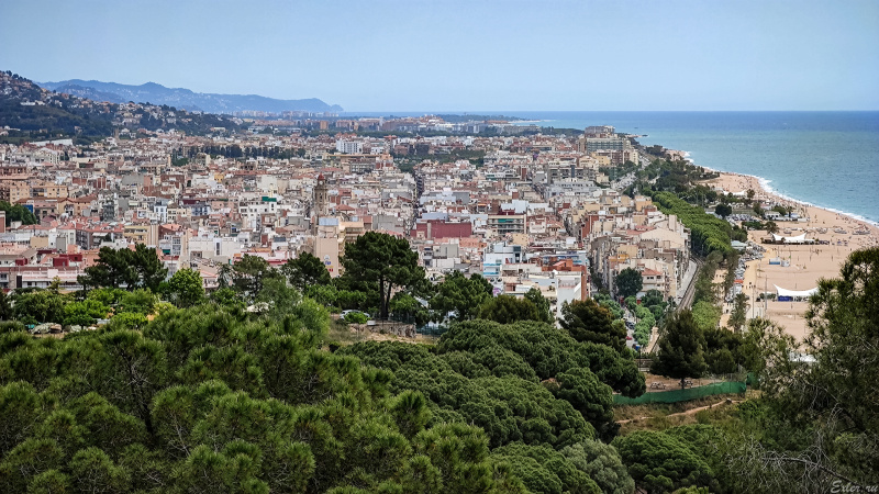 Но местные на этот пляж ходят редко, там обычно полно туристов. Местные ходят на пляж, который с этой точки почти не виден - он уже в соседнем городке, Пинеде-де-Мар. Вот это уже - пляж для местных (там рядом отелей нет, соответственно, и туристов нет), и сегодня там народу было достаточно много - почти как в старые времена.