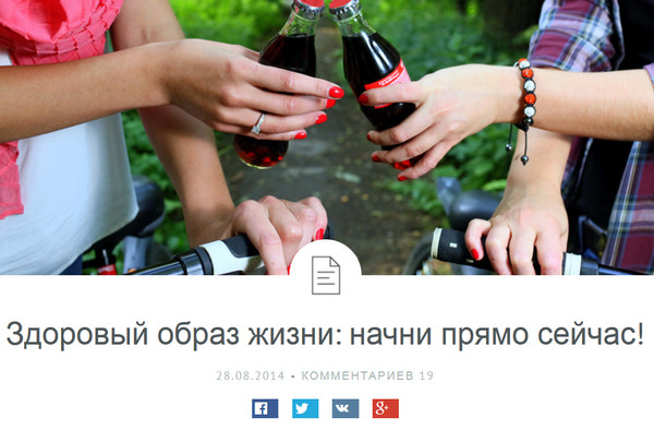Мне прислали ссылочку на раздел одного такого заказчика - некоей "Академии безалкогольных напитков", которая должна активно продвигать всякую химическую дрянь, вроде кока-колы. Ребята совершенно примитивные, публикуют от имени каких-то мутных "профессоров" и "докторов медицинских наук" советы по "здоровому образу жизни", и в "Лайфхакере" это публикуется на голубом глазу. Я понимаю, что денег очень хочется, но ведь хоть какую-то совесть надо иметь, правильно? Это я про "Лайфхакер", с "Академией"-то все понятно - ребята тупо отрабатывают рекламные бабки.