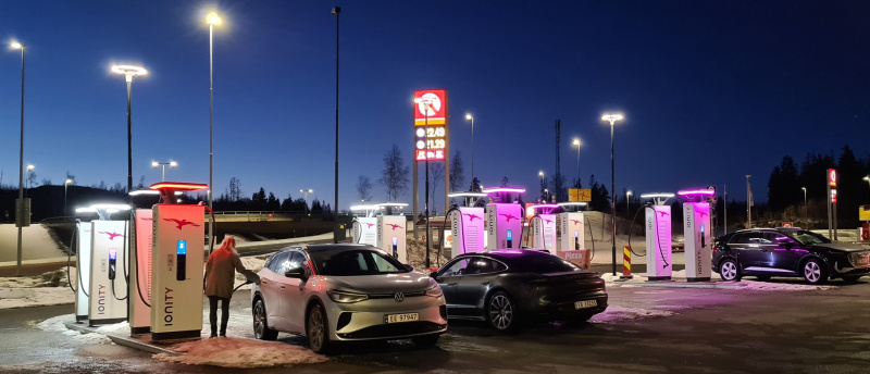 В итоге я за неполный день заряжал автомобиль 4 раза, от 20 минут до 1 часа каждый. (Вспомнился рассказ знакомой из США, которая с мужем пересекала Америку на Тесле -- из 6 дней пути 2 дня они провели на заправках). Каждая зарядка была стрессом -- в первый раз, в ночи, мне непрерывно звонила прекрасная сотрудница авиакомпании: "я нашла ваши лыжи и вынесла в терминал, где вы", на что я печально отвечал: "стою на электрозаправке в 15км от аэропорта, еще минут 15-20". Второй раз с товарищем, опаздывая, возили мою машину по городу Рена в поисках заправки: в супермаркетах они все работали только с их собственным приложением (на норвежском), которое надо было устанавливать на смартфон, на Shell электроколонок не оказалось, нашли только на окраинной заправке Circle K, где уже прочно стояли на зарядке три электрокара и по счастью только что освободилась последняя колонка. Мы оставили машину заряжаться и уехали дальше по неотложным делам, хорошо, что у нас было две машины, одна из которых бензиновая!