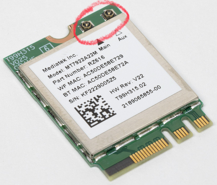 По идее там 2 антенны, main для wifi и aux для wifi и bluetooth