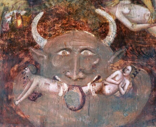 Лик Сатаны на Страшном суде. Фреска из бенедиктинского монастыря Abbazia di Pomposa.