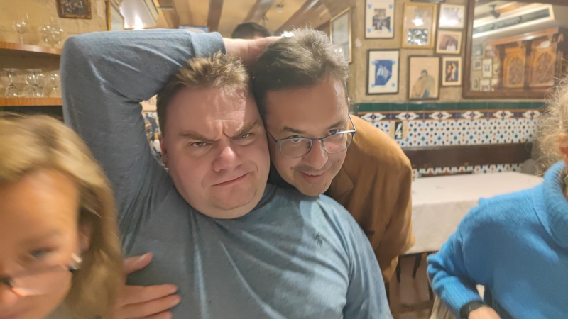 Ну и фото (хотел было написать "довоенное", но оно уже не довоенное) - мы с дорогим другом Сашей Плющевым: он приезжал на MWC 2022 в Барселону.
