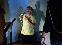 И стоял он наверняка так чтобы максимально быстро убить всех, а не выборочно -- тех кто дергается.