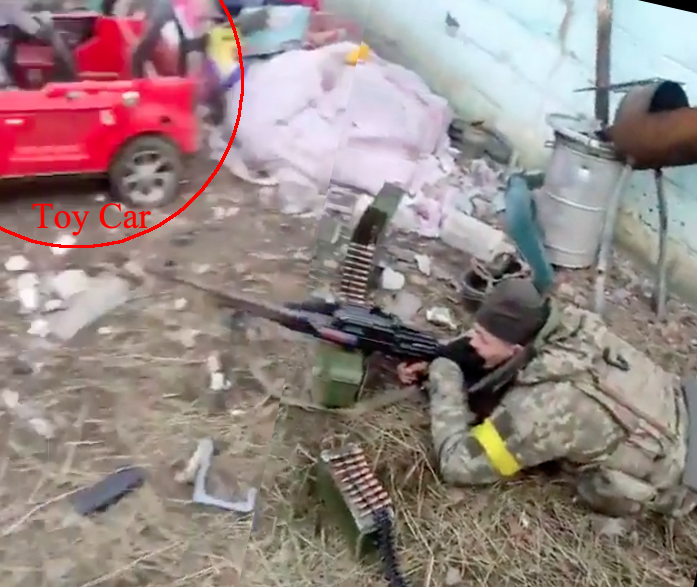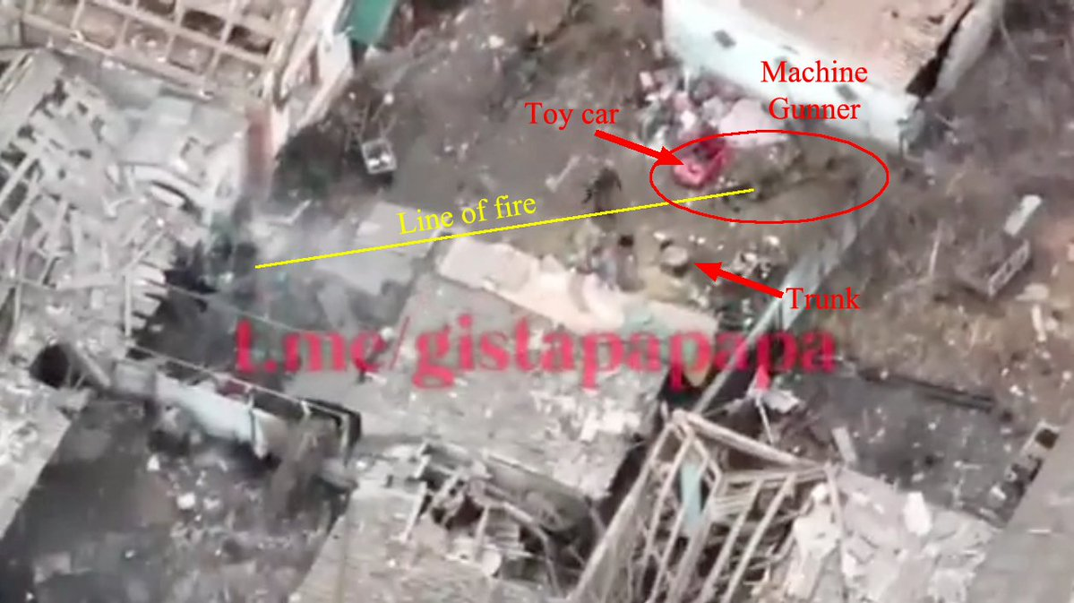 я сначало увидел видео с дрона с комментарием, что это результат работы миномёта (у Невзорова вроде), но при этом смущали живые курицы ходившие рядом. а вот потом появилось видео со "сдачей в плен".
