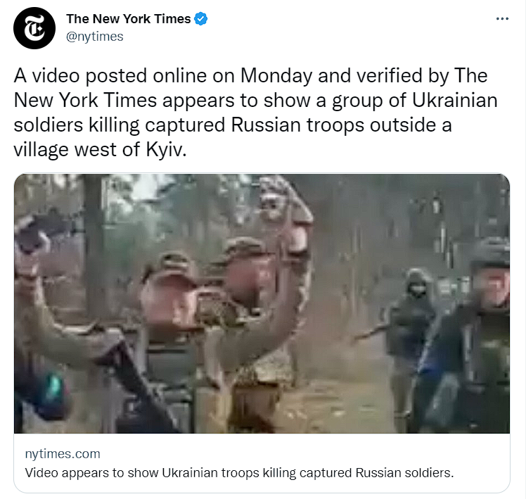 Эксперт по военным преступлениям Утрехтского университета Ива Вукушич рассказал New York Times, что главный вопрос — когда и как были убиты российские военные. По его словам, если их застрелили во время перестрелки с открывшим огонь россиянином, то, возможно, это нельзя квалифицировать как военное преступление. Если же их убили позднее из мести, это с большей вероятностью можно считать военным преступлением.
