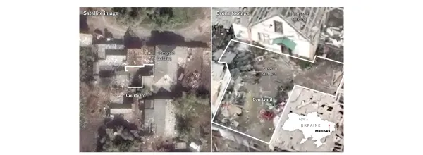 Журналисты New York Times сопоставили оба видео со спутниковыми снимками и пришли к выводу, что записи действительно были сделаны в Макеевке. Все произошло около здания на ферме.