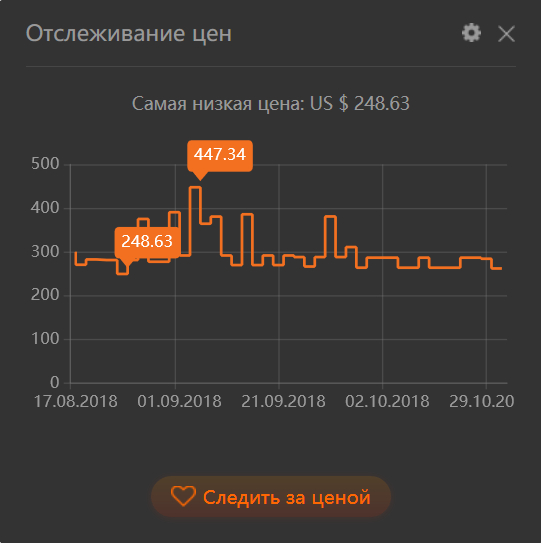 Смотрим на динамику. Вроде все честно, самая низкая цена. Единственное - цвет тут только черный, выбрать нельзя.