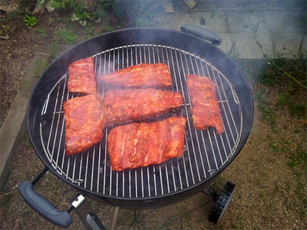 Угля было явно недостаточно, температура была низкой, ребра жарились где-то минут 20. Понял, что их надо было переворачивать почаще, а не один раз, как я сделал - на паре кусков небольшие области слегка подгорели - впрочем, может быть, это из-за всяких маринадов.