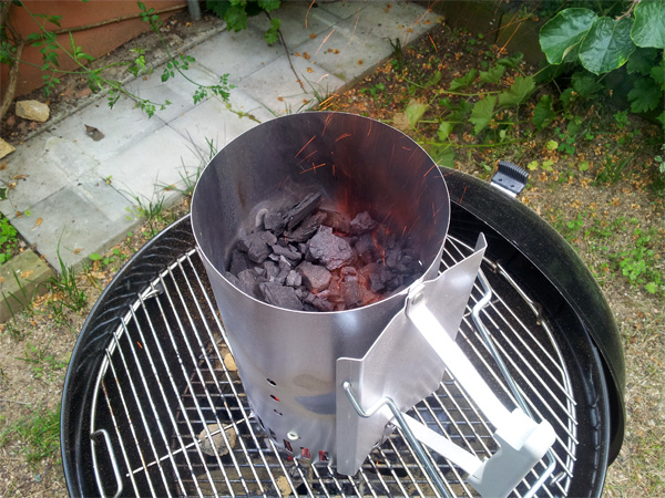 Но и на таких неудачных углях стартер отработал нормально - ровно 10 минут, и все угли как следует разгорелись.
