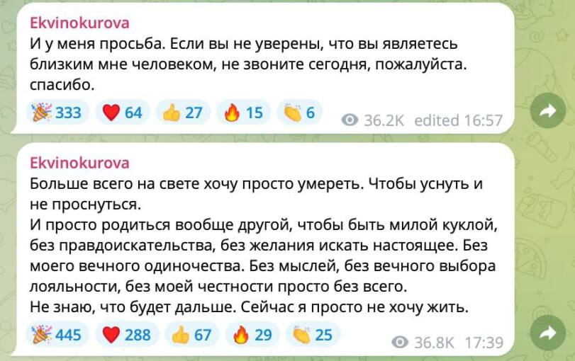 Вон она теперь стенает в своем персональном телеграм-канале. Типа "а нас-то за что"?