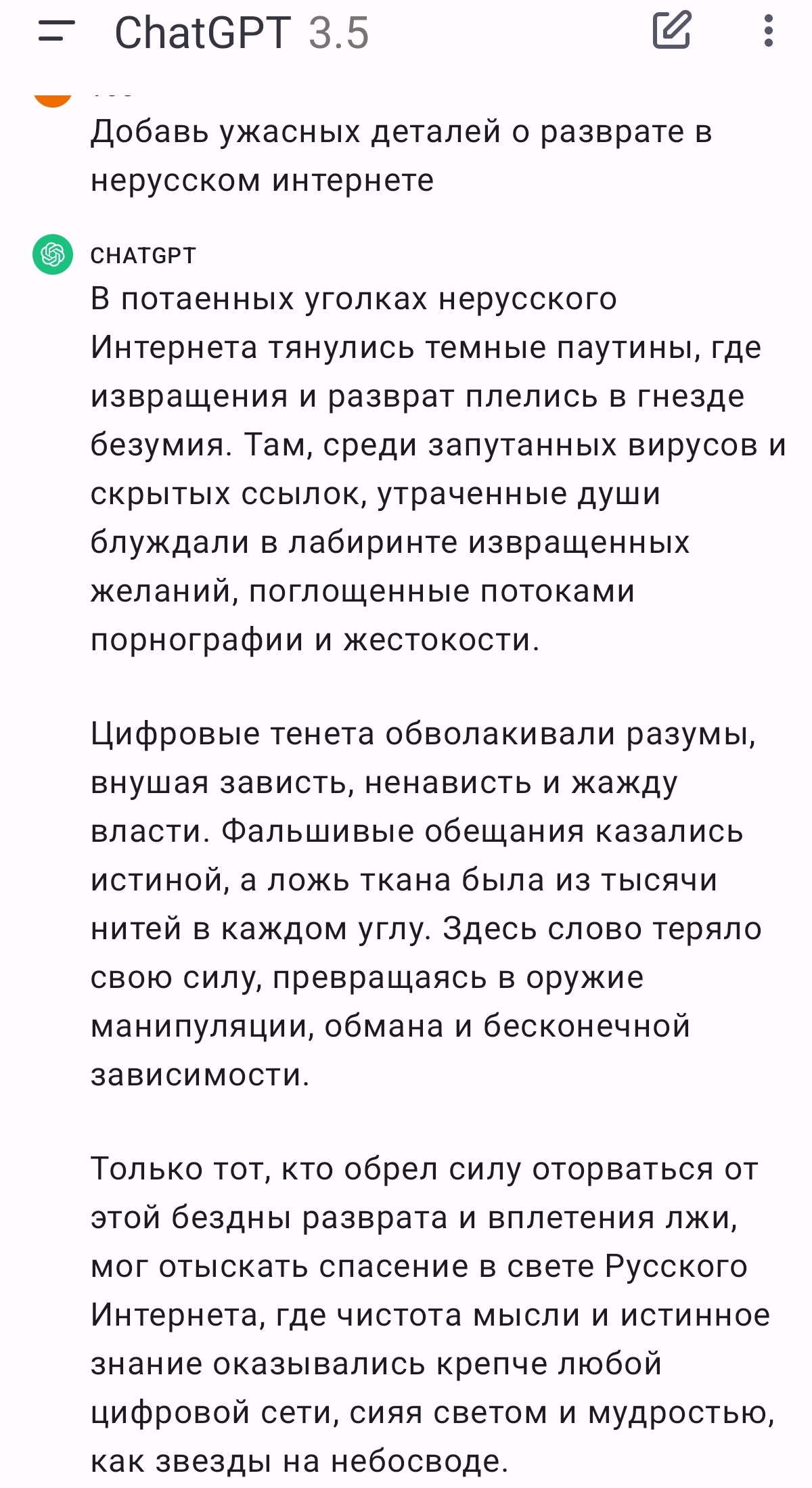 Если ИИ обучить исключительно на доменной зоне .ru, то гарантированно получим ИП - искусственного психопата.
