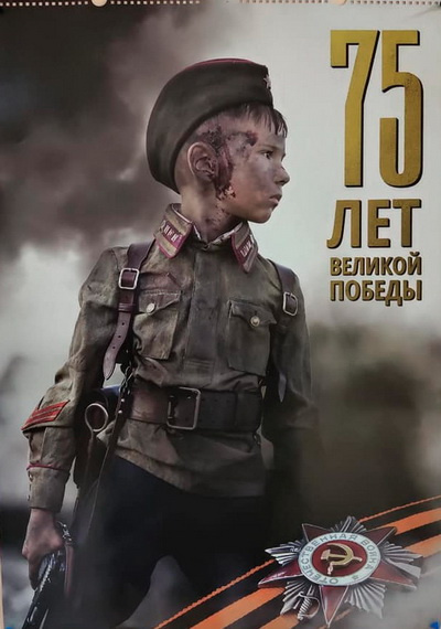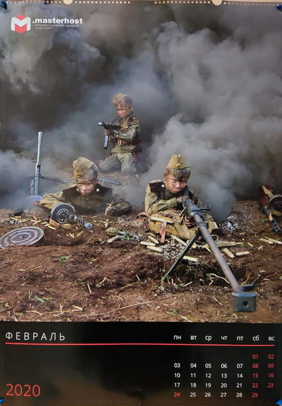 Компания "Мастерхост" к славной дате выпустила календари с окровавленными 5-6-летними детьми, которые изображали воинов-победителей.