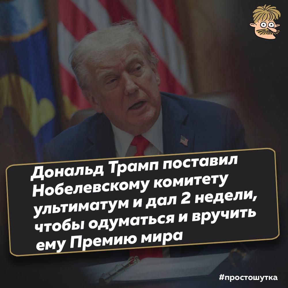 Ой, что-то кажется мне, что учредят в Штатах свою премию. Имени Трампа. Ему же первому и вручат😁