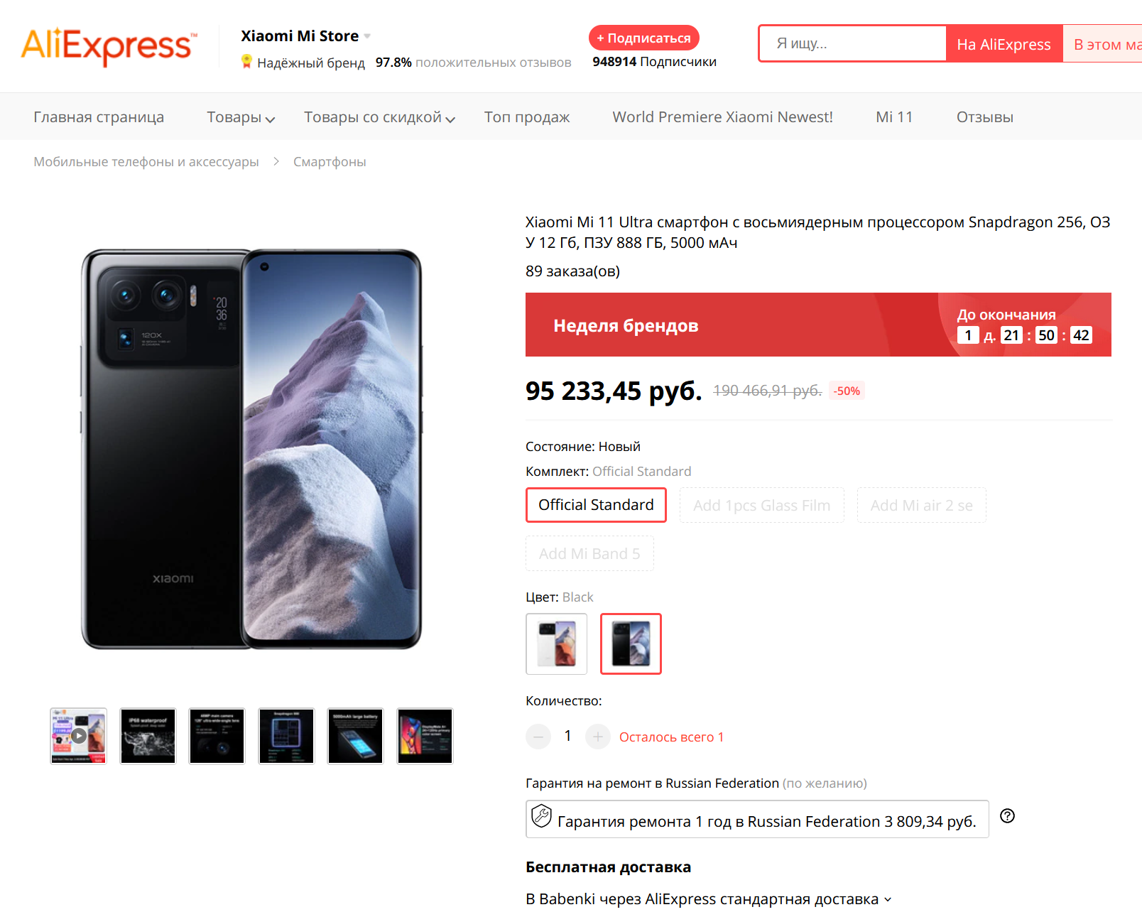 Похоже лимитированное кол-во Xiaomi Mi 11 Ultra за 95000р. Разбирают как горячие пирожки.