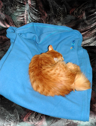 Какое, наверное, блаженство спать на таком уютном, мягком и красивом пледе, свернувшись калачиком и видеть разноцветные сны! 😄 Кисуля, явно, довольна! 😄