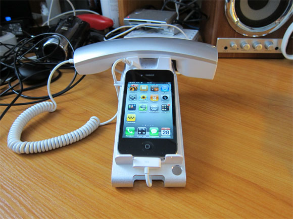 Потом компактный беспроводной телефон засунули в громоздкую пепяку с проводами.