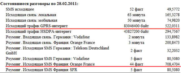 В-третьих, выяснилось, что я совершенно напрасно не пользуюсь пакетными предложениями, коих там полно. Например, за 200 рублей - 100 SMS в зарубежных странах. Это нужно подключать перед поездкой или во время поездки, так как действительно предложение только 30 дней, и вот если бы я подключил - хватило бы за 200 рублей и на Францию, и на Германию. А так я заплатил порядка 1500 рублей (Германия не вся включена в отчет) за SMS в этих странах.