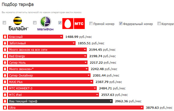 Попробовал подбор выгодных тарифов, был предложен невыгодный вариант, по причине не учета кучи дополнений от операторов.