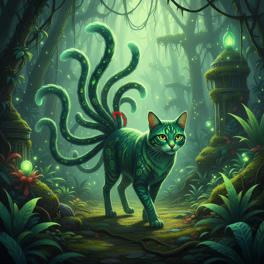 Как часто вы видели живую зелёную кошку с девятью хвостами?