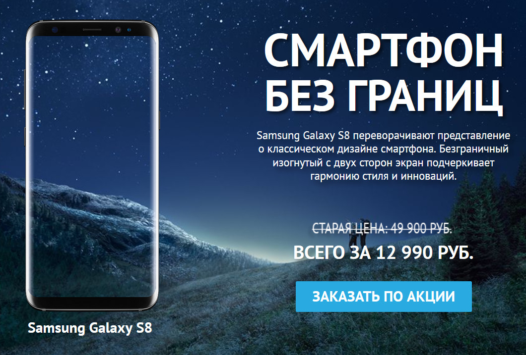 Сейчас в Рунете активно гуляет реклама вот таких шарашек, где предлагаются якобы Galaxy S8, но при этом за треть цены. Я эту рекламу даже у себя на сайте в баннере РСЯ видел.