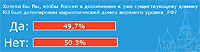 Вот здесь вы неправы. Рейтинг постоянно обновляется примерно раз в несколько часов, я уже несколько дней за ним наблюдаю. Недавно там был перевес, больше 50% было "да". Потом поймал замечательную картину, когда было (внимание!) 49.7% "да" и 49.7% "нет" (даже скриншот остался, может его в баннизмы..?))). Сейчас хотя бы сбалансировано.