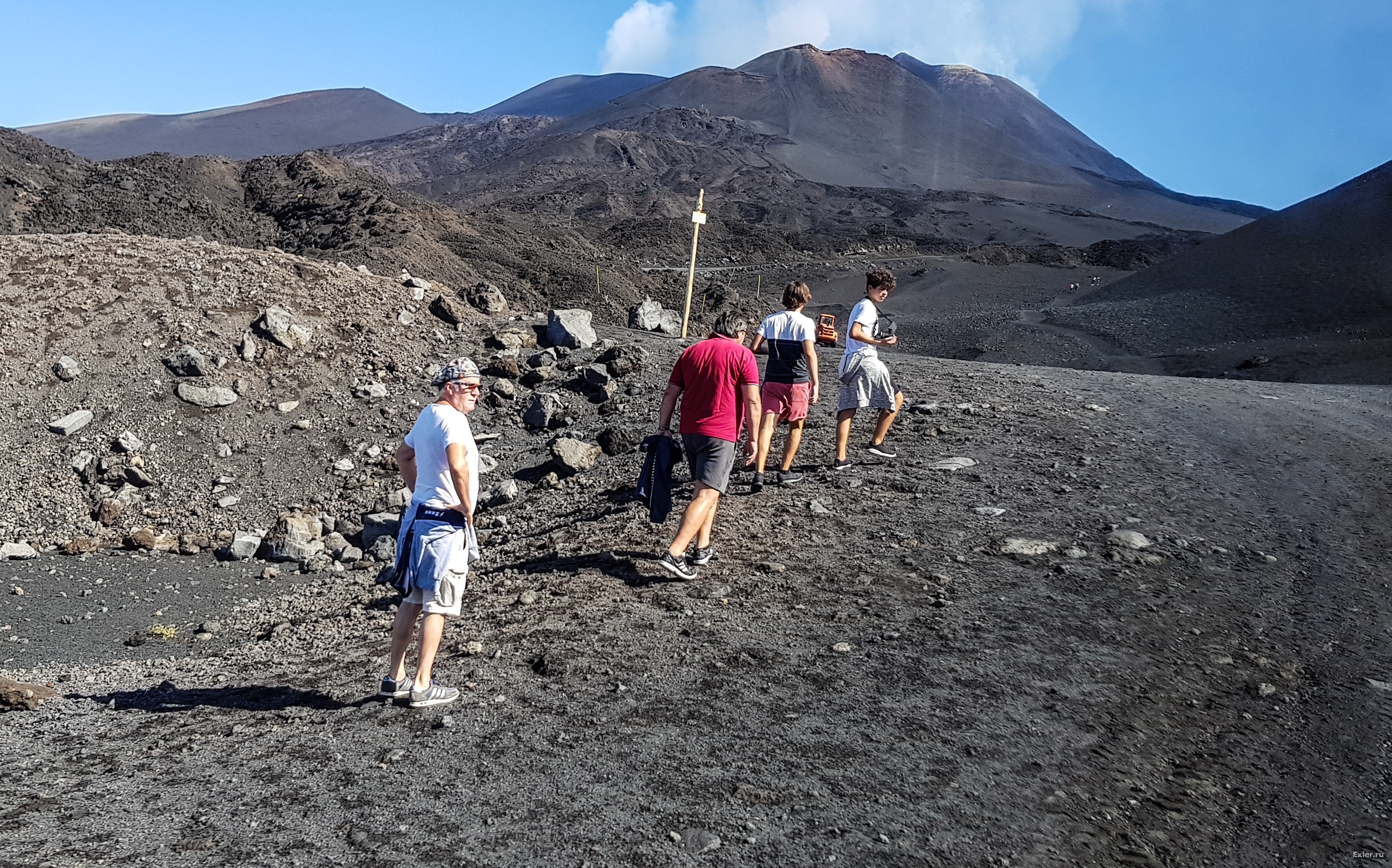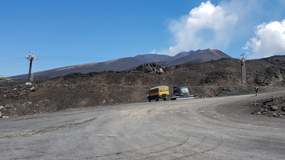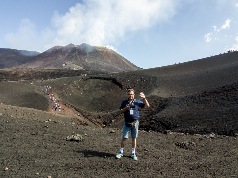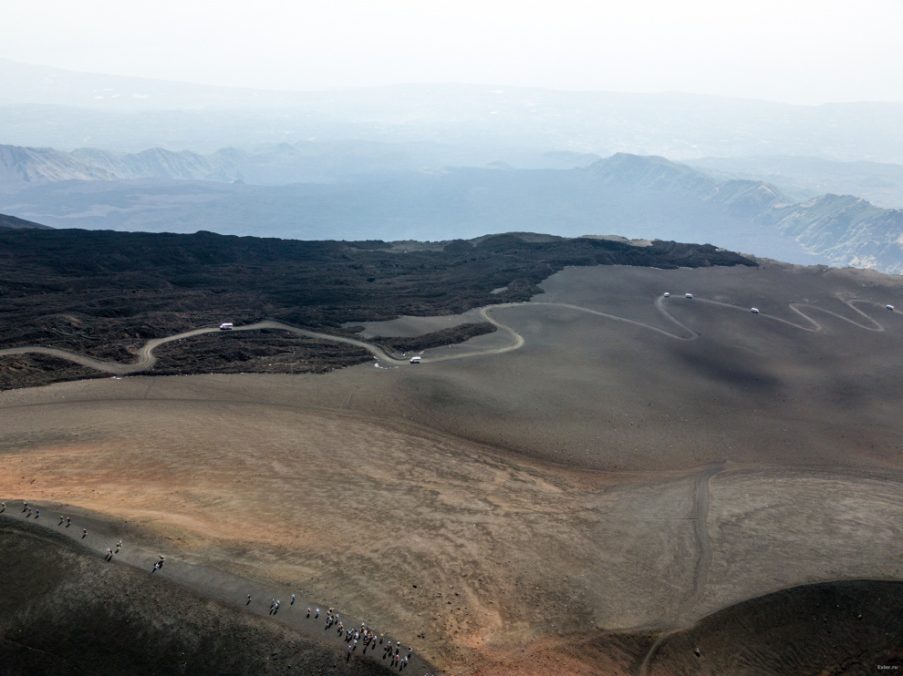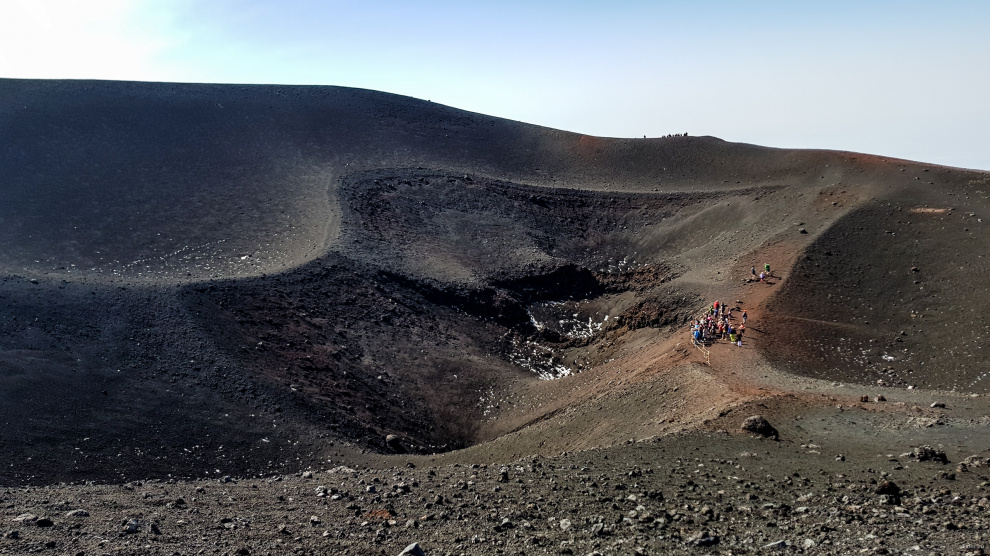 Доехали до верхней базы, дальше отправились пешком к большому кратеру - вот он.