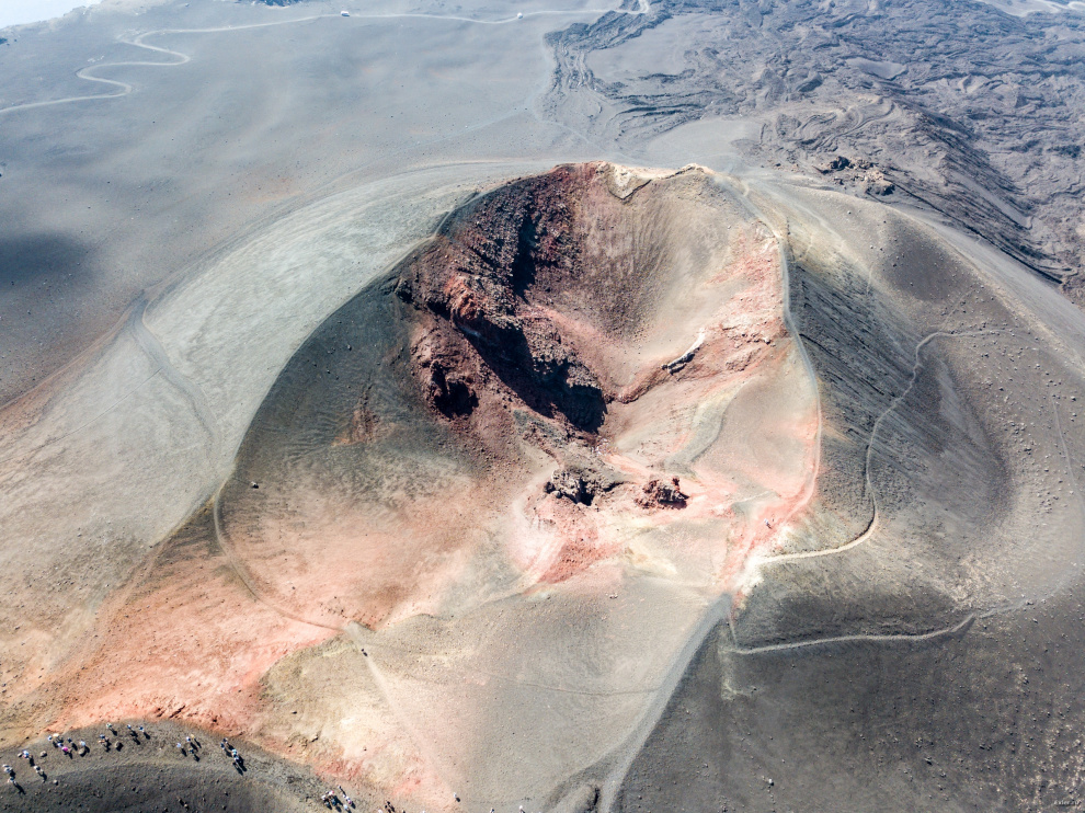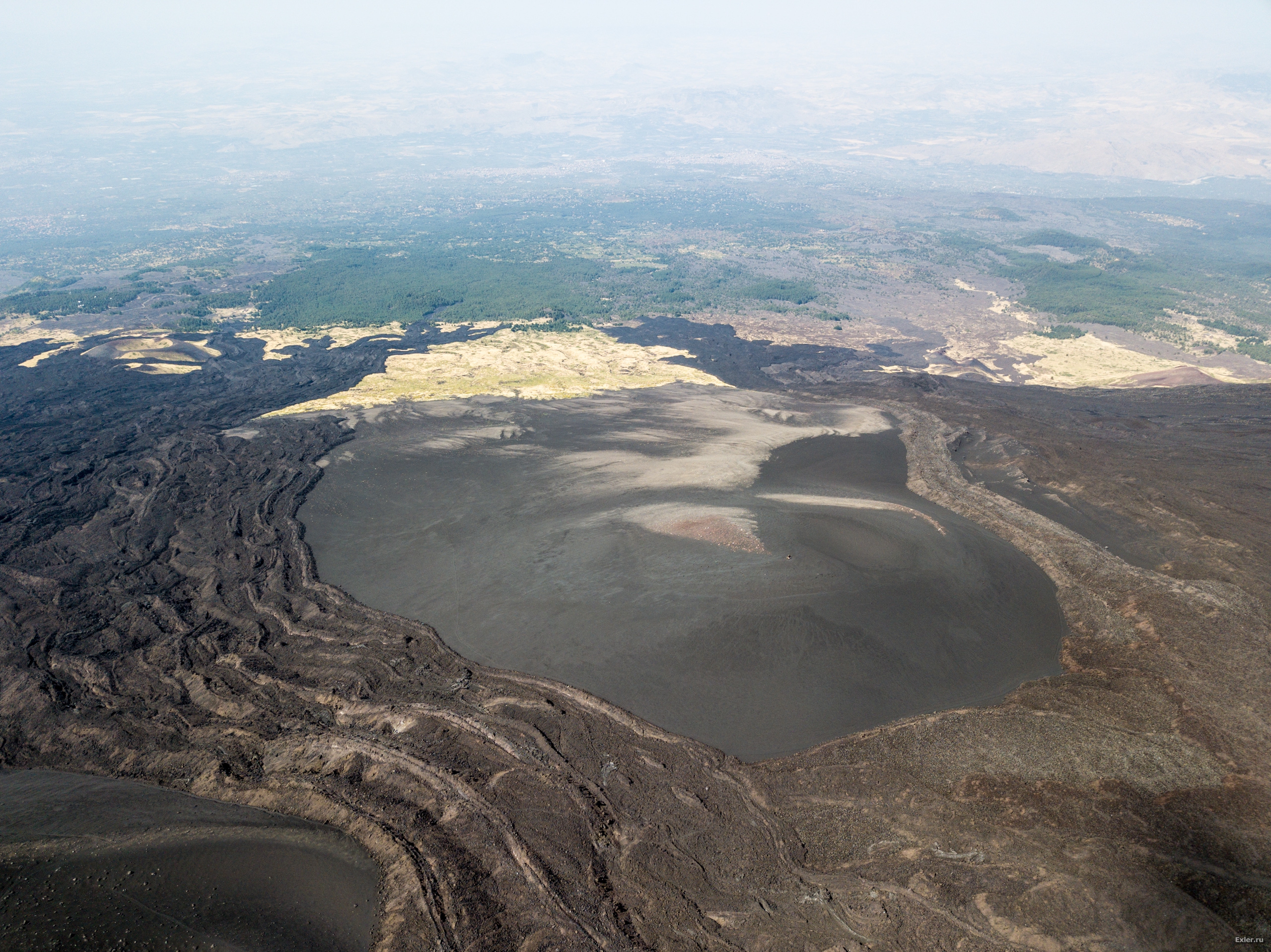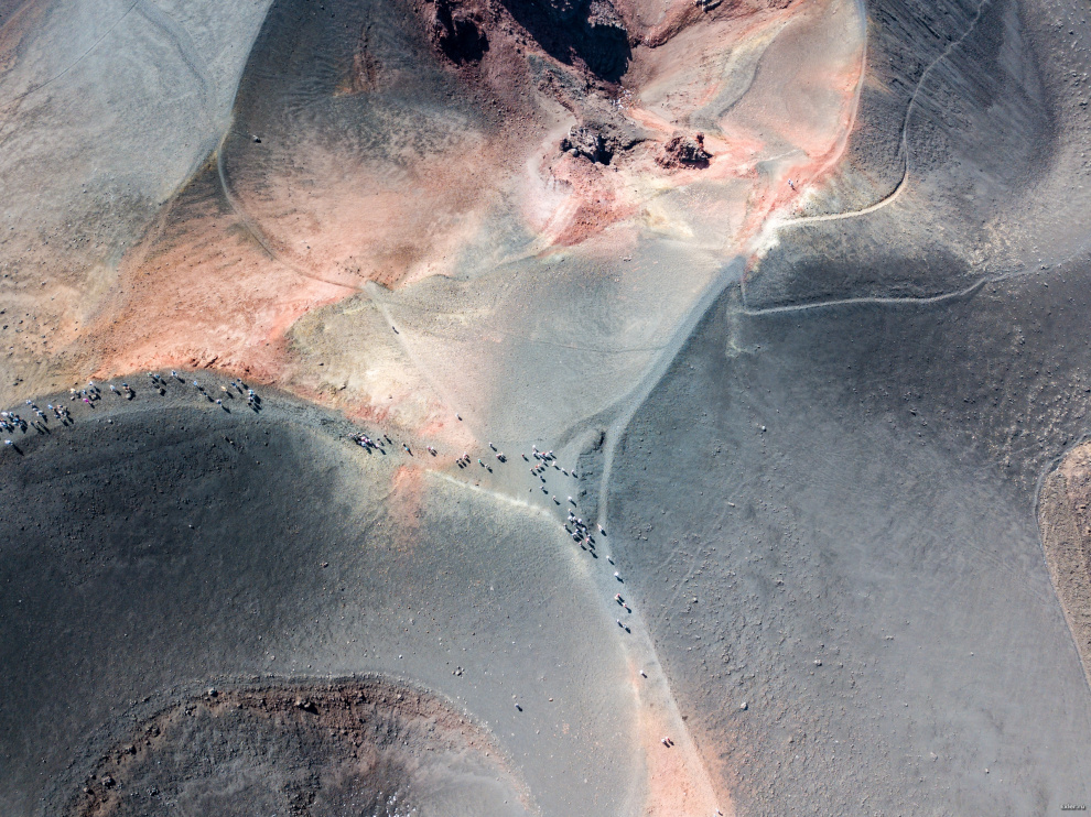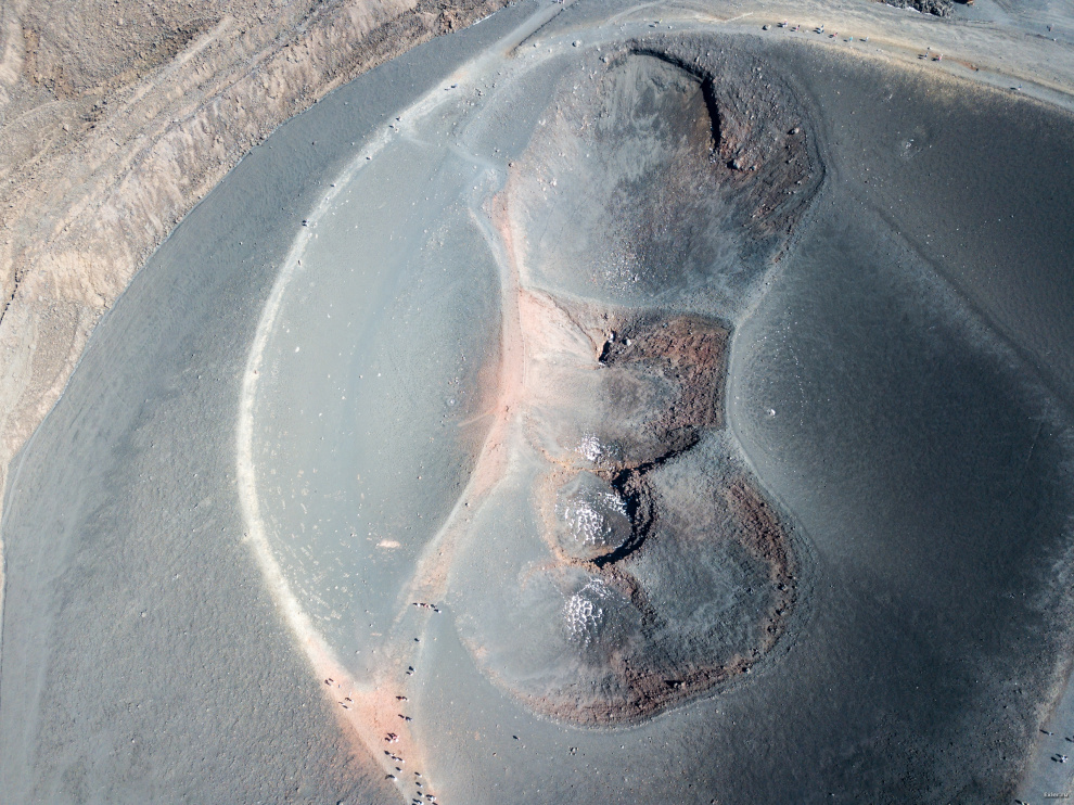 Вид на большой кратер с высоты. Вон люди ходят вокруг него.