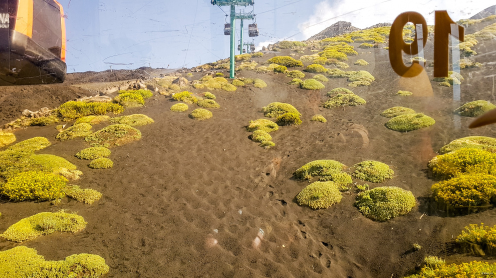 Вулканический песок и какая-то растительность.