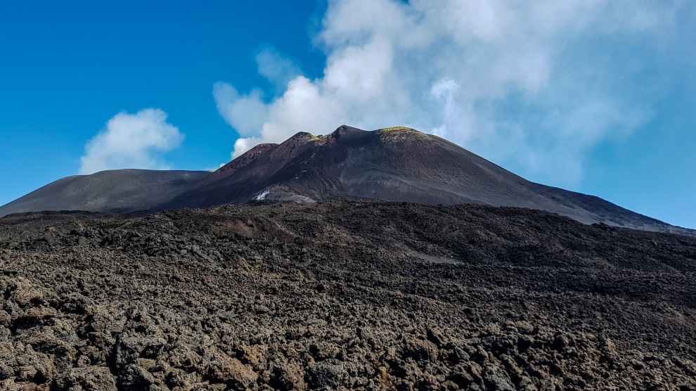 Этна - действующий вулкан, находящийся на Сицилии нендалеко от города Катани. Это самый высокий действующий вулкан в Европе. Высота его сейчас составляет 3329 метров над уровнем моря и он занимает площадь в 1250 квадратных километров. Для сравнения, площадь Москвы - 2511 квадратных километра.