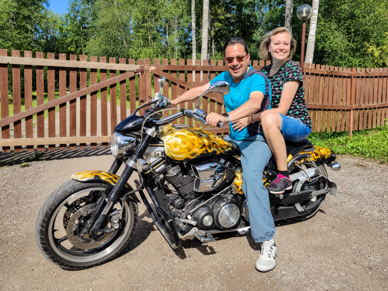 Подготовка идет полным ходом. Мне вручили страшно брутальный мотоцикл, и я катаю девчонок по деревне Кокнесе.