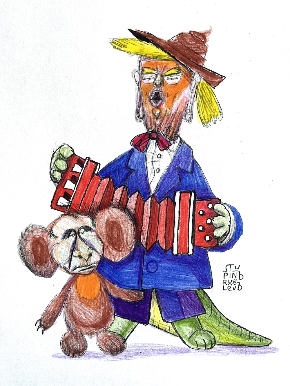 А вот во внешней политике, да. Это сущий Йагупоп 77 из Королевства кривых зеркал, и похож очень на персонажа фильма (хотя в оригинале у Виталия Губарева был Топсед (Деспот)).